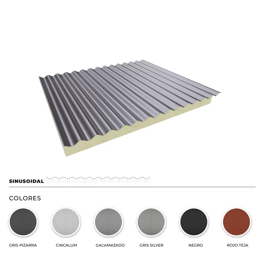 Panel metálico con diferentes núcleos aislantes. Con cara superior conformada de láminas de acero prepintado o cincalum y cara inferior en foil de polipropileno de alta resistencia. Utilizable en cubiertas y revestimientos de muros de edificaciones industriales, comerciales y residenciales. Pendiente mínima recomendada del 5%.